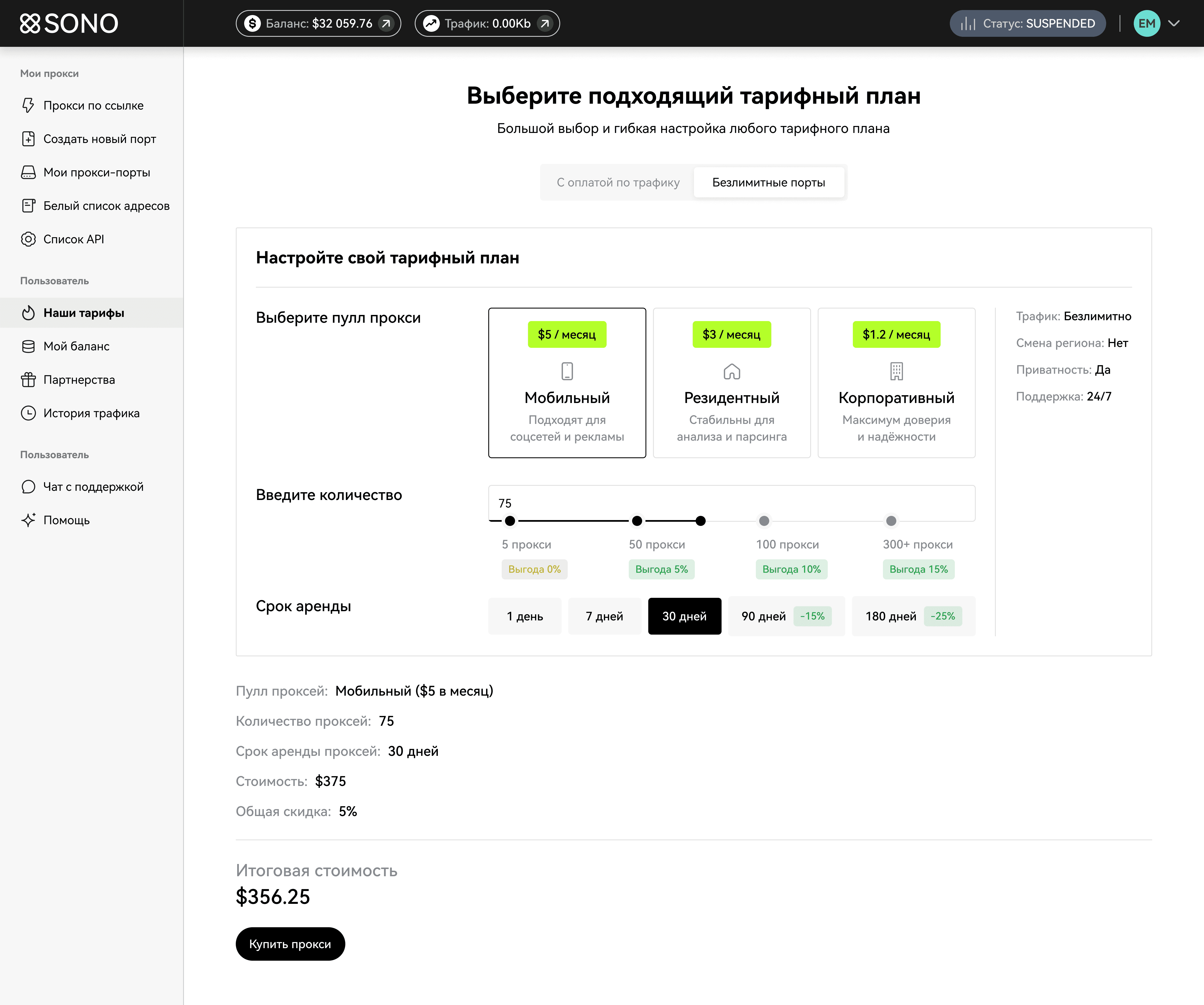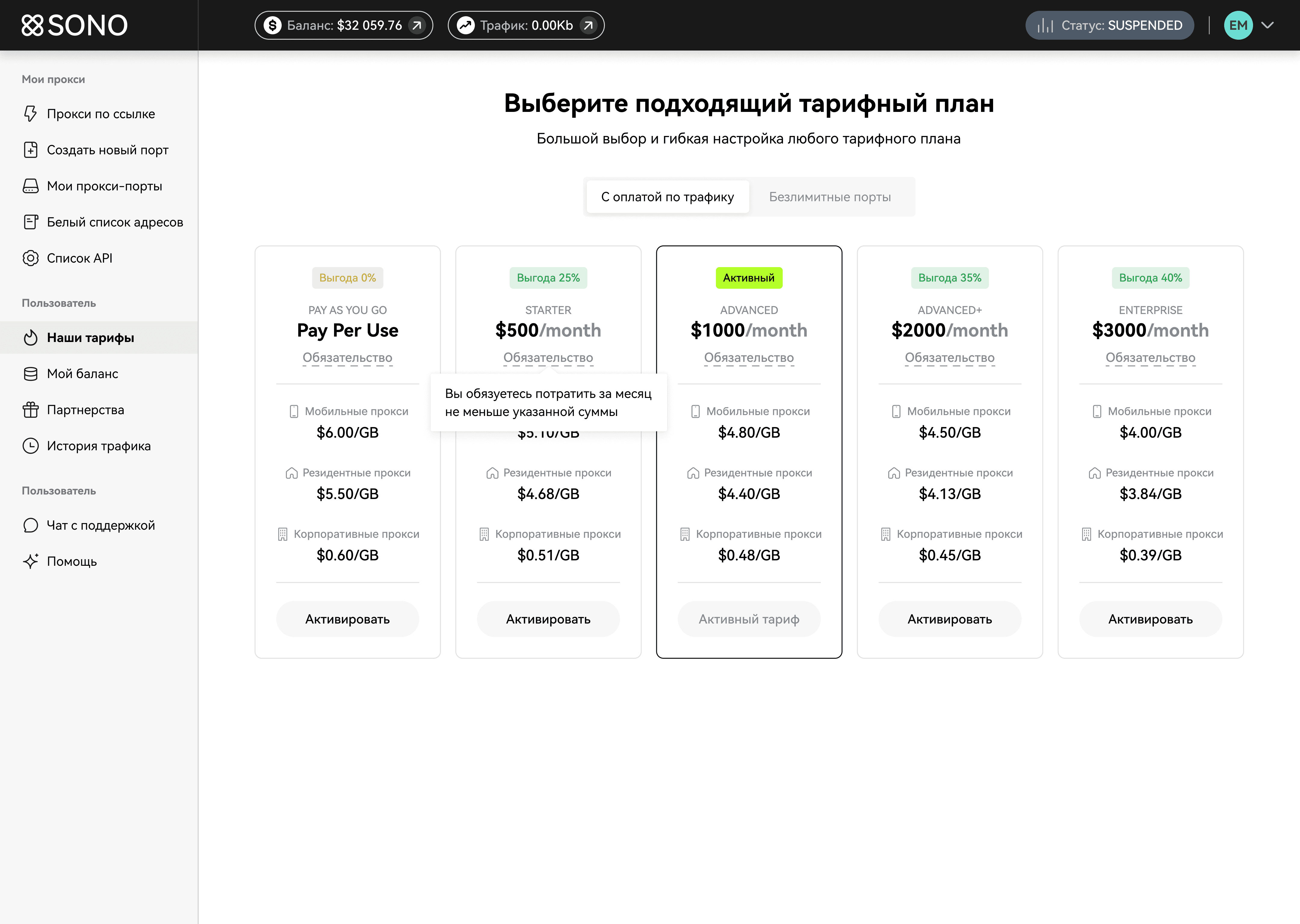 Обновил раздел тарификации для B2C-сервиса по продаже прокси.